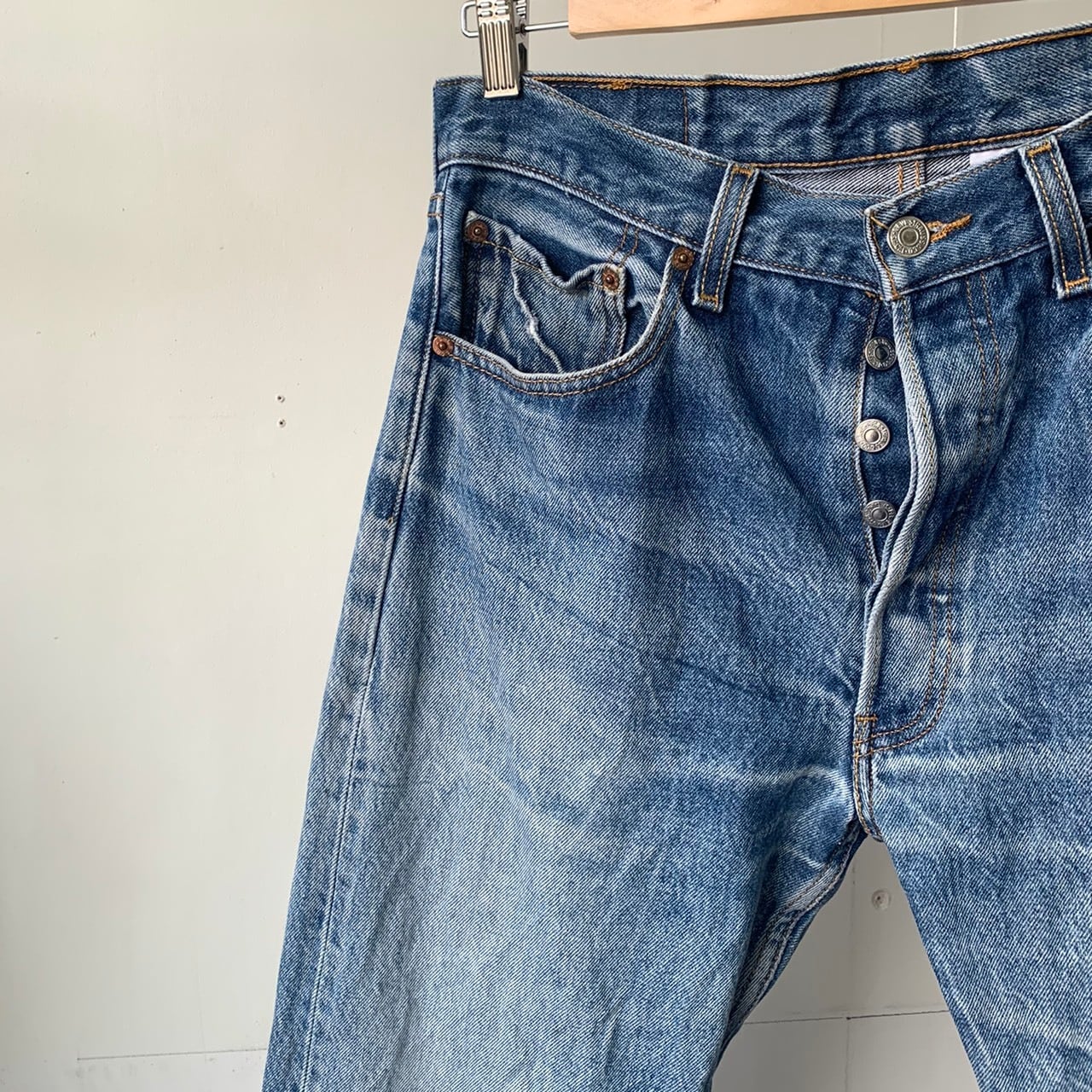 古着特有の使用感は多少ありますが、デニムの色落ちがいいです